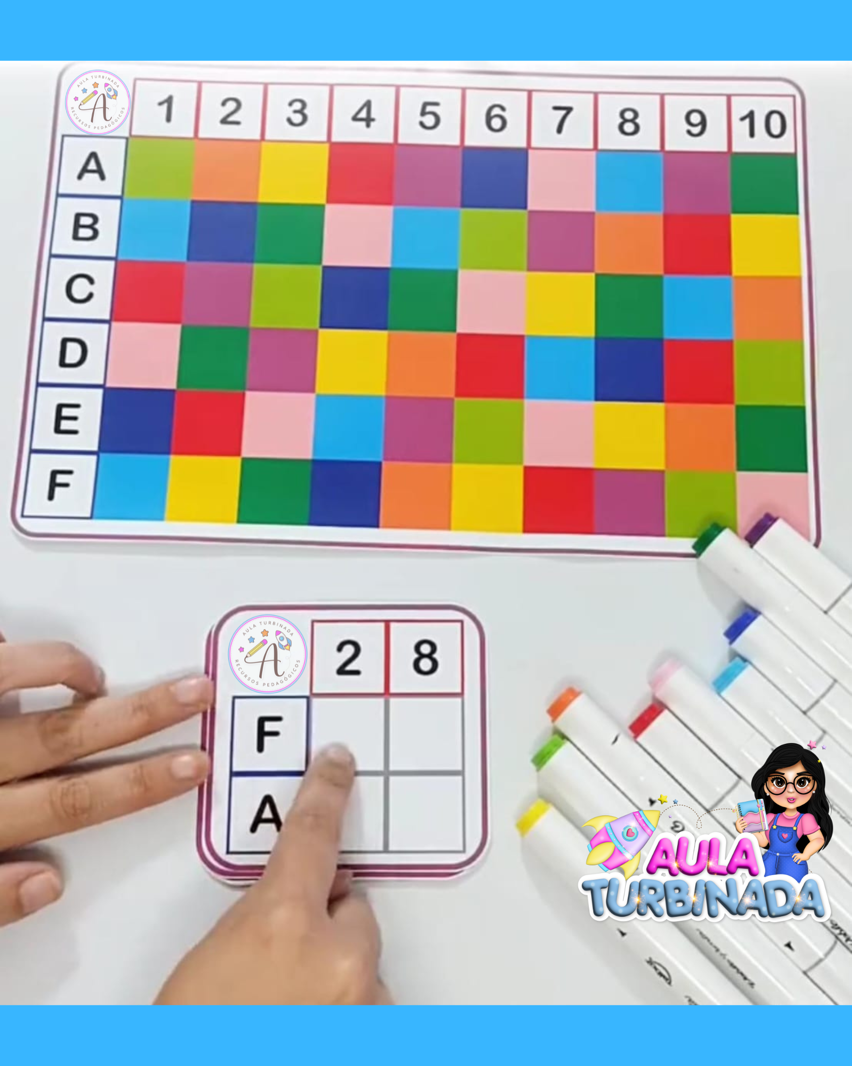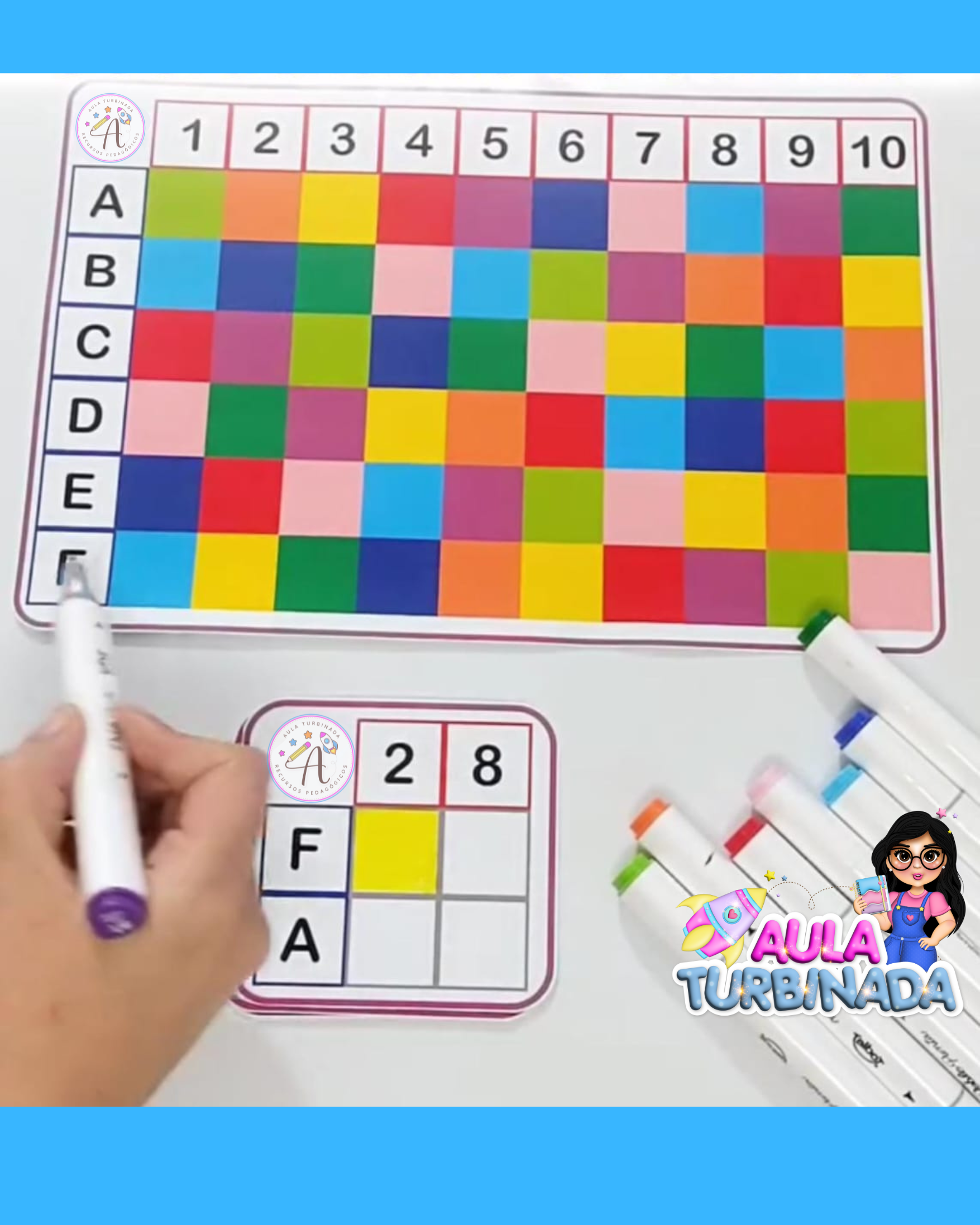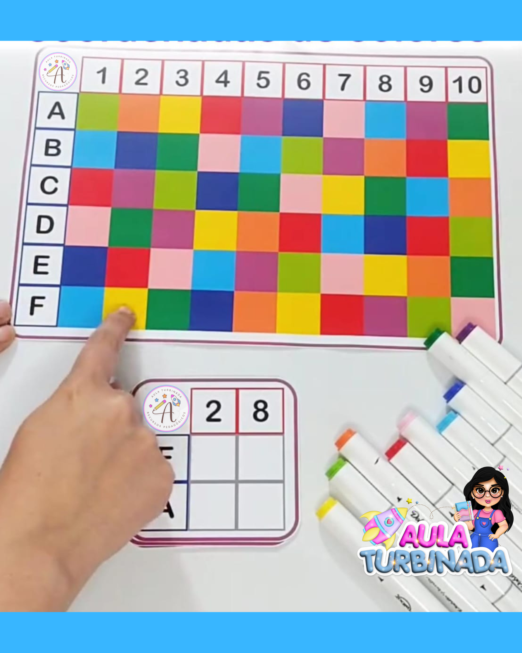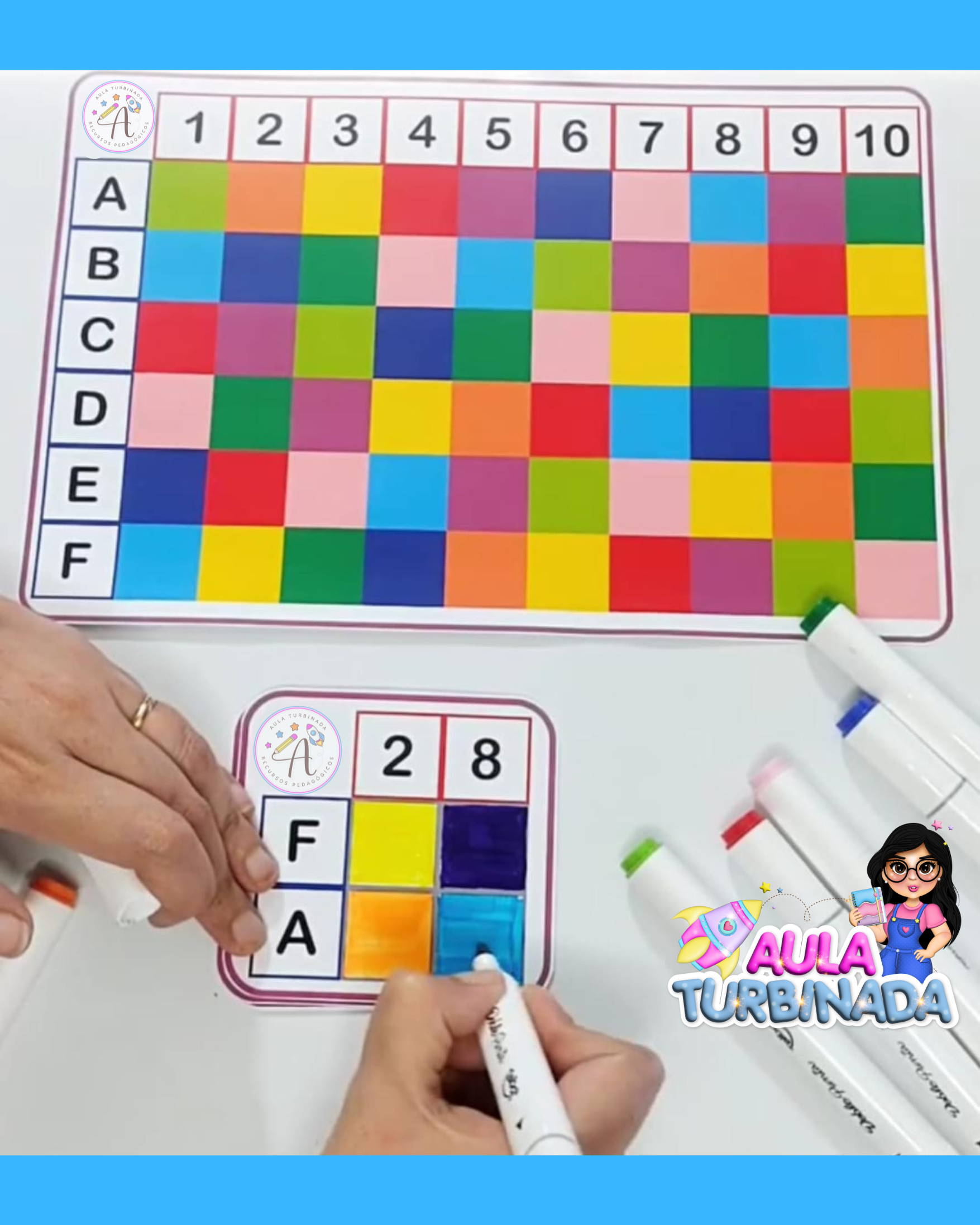 No Coordenadas de Cores, a missão é colorir os tabuleiros seguindo corretamente as coordenadas indicadas no painel central. Atenção, foco e muita cor! 🌈🧠