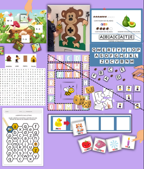 Você ainda recebe um pacotão com 19 jogos pedagógicos para alfabetização 📚✨