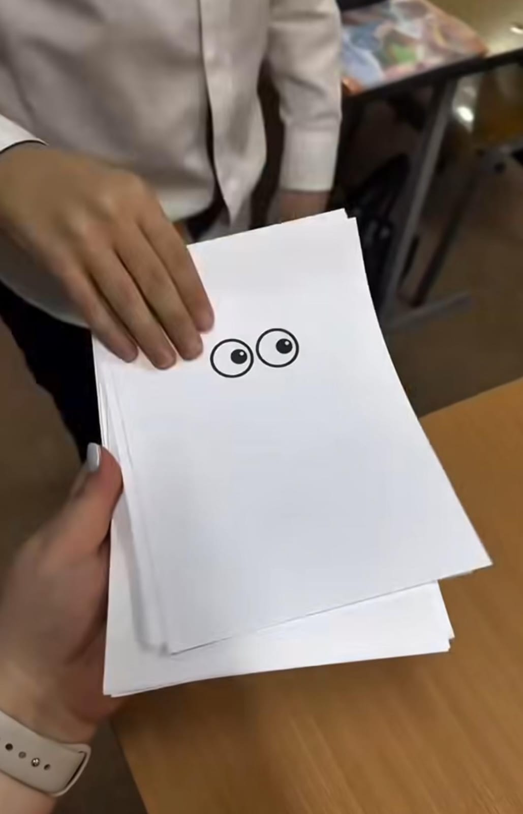 👁️ Os alunos observam os olhos na folha