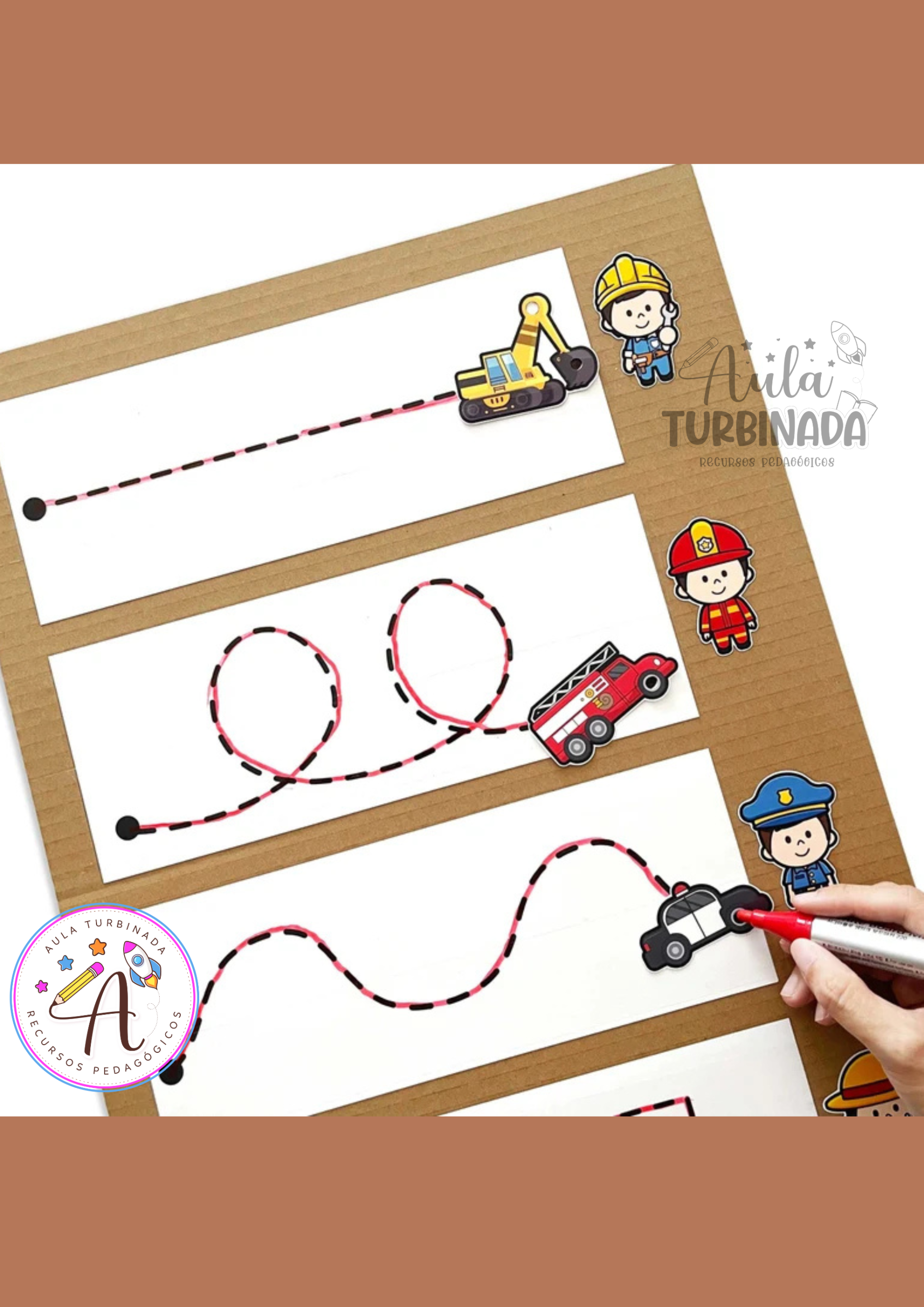 📄 Produto: 6 páginas em PDF prontas para imprimir ➡ fichas com linhas, trabalhadores e seus veículos!