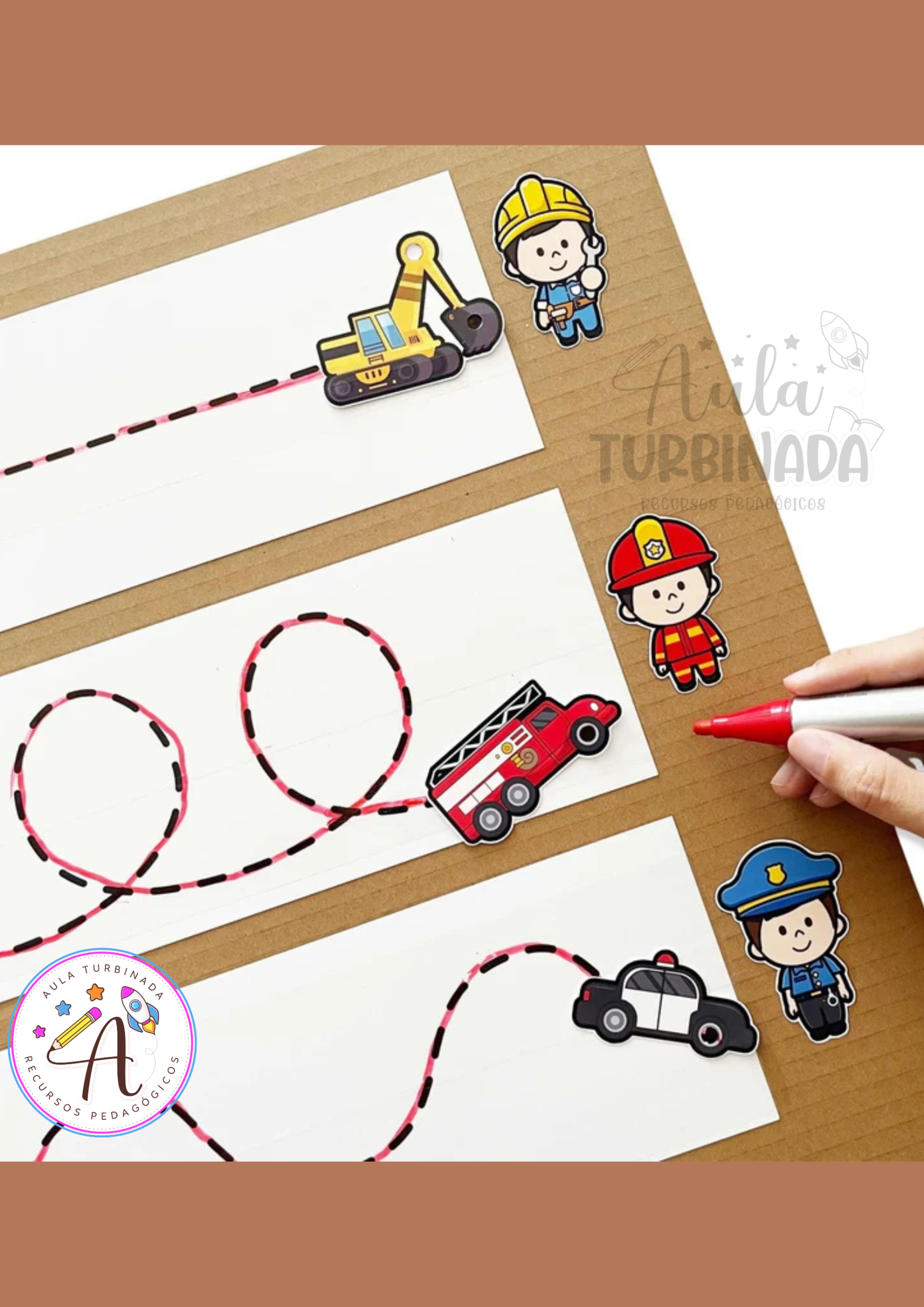 👷‍♂️ Aprimore a coordenação motora fina e o desenvolvimento cognitivo do seu filho com nosso divertido jogo de pré-escrita! As crianças vão adorar combinar veículos com trabalhadores e traçar linhas de traço para levar os veículos até seus trabalhadores.