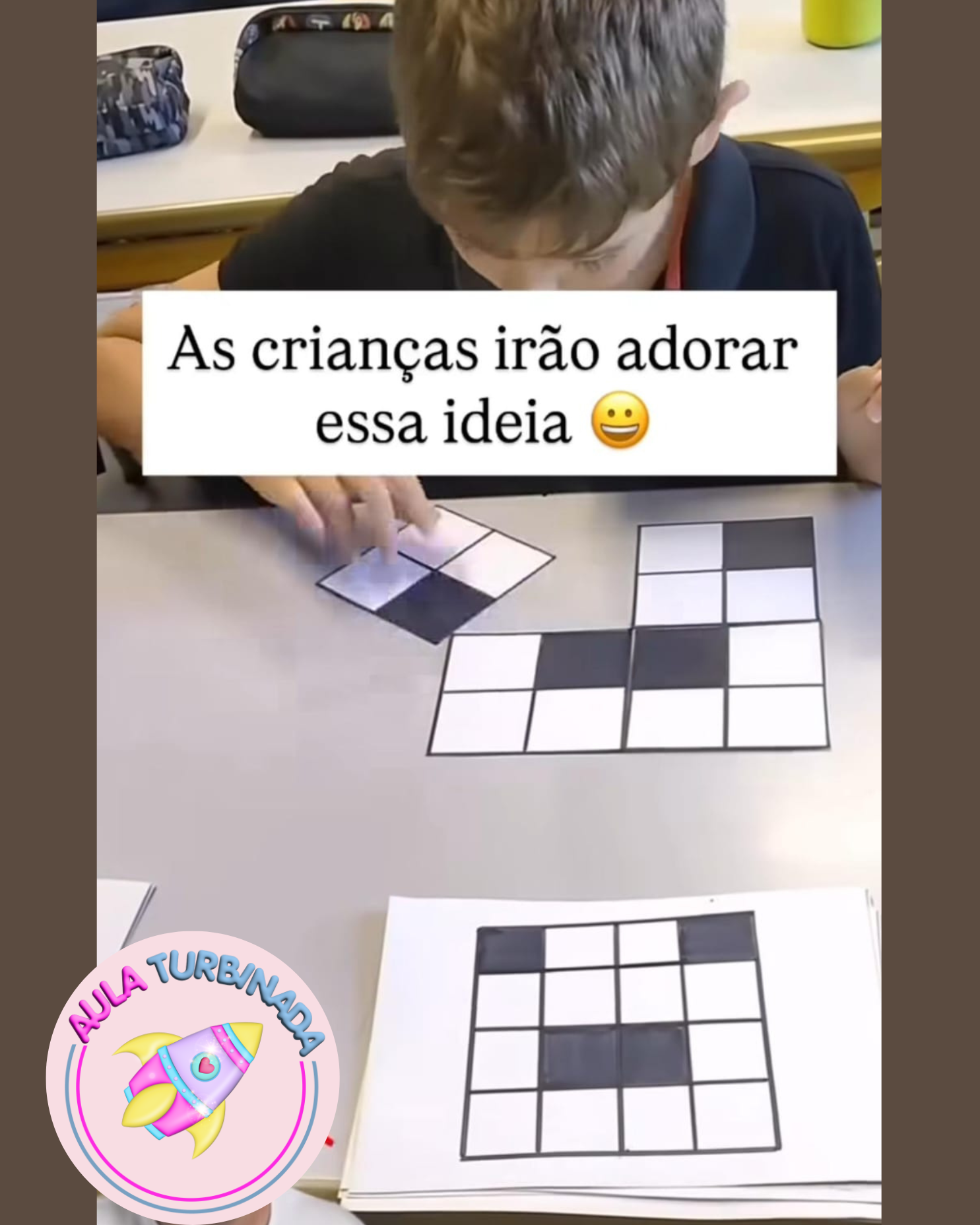💙 Uma proposta visual simples, mas muito poderosa para o desenvolvimento infantil! A atividade trabalha percepção visual, raciocínio lógico e coordenação motora de forma prática e acessível, usando apenas papel, lápis e desafios organizados em quadros ✏️📄