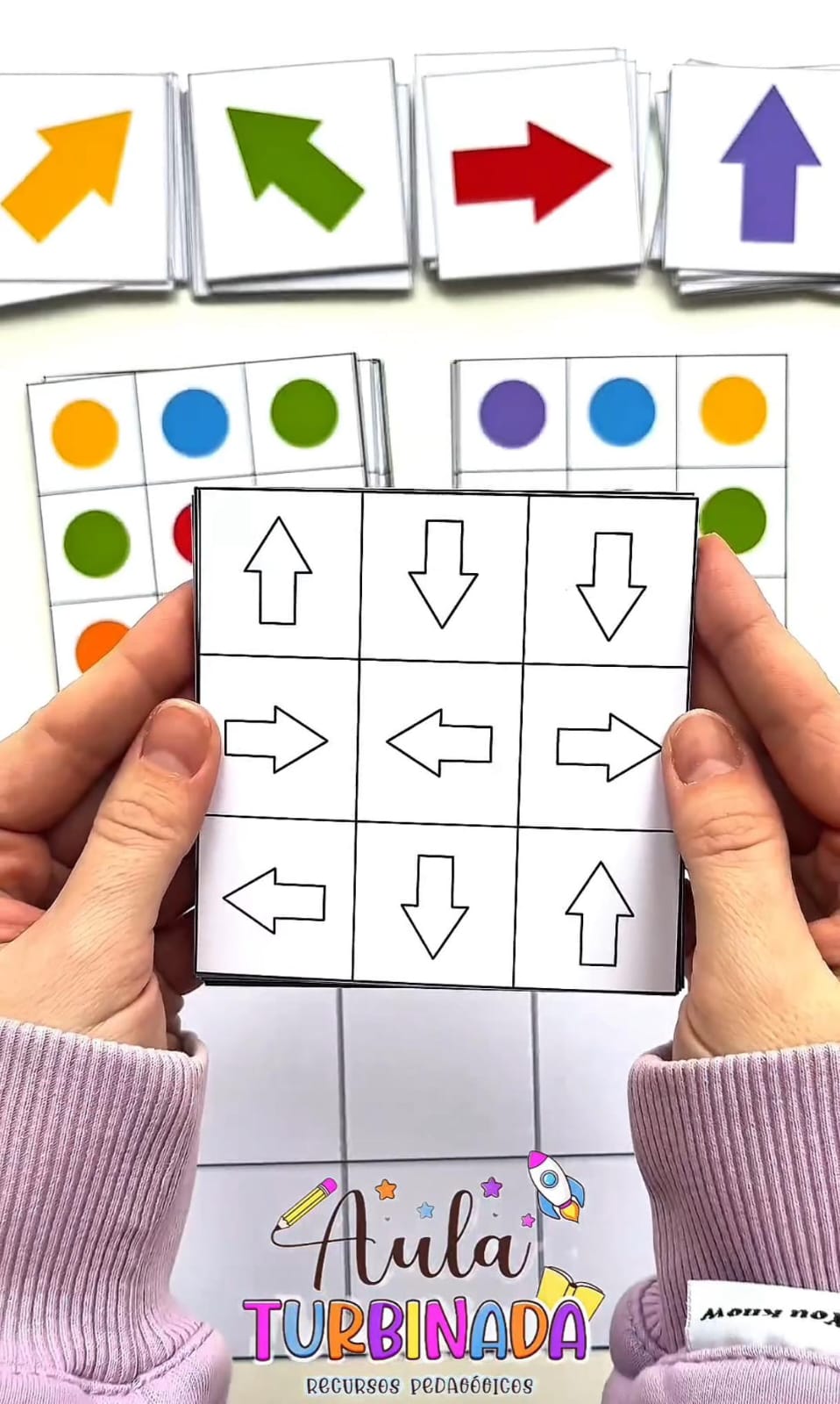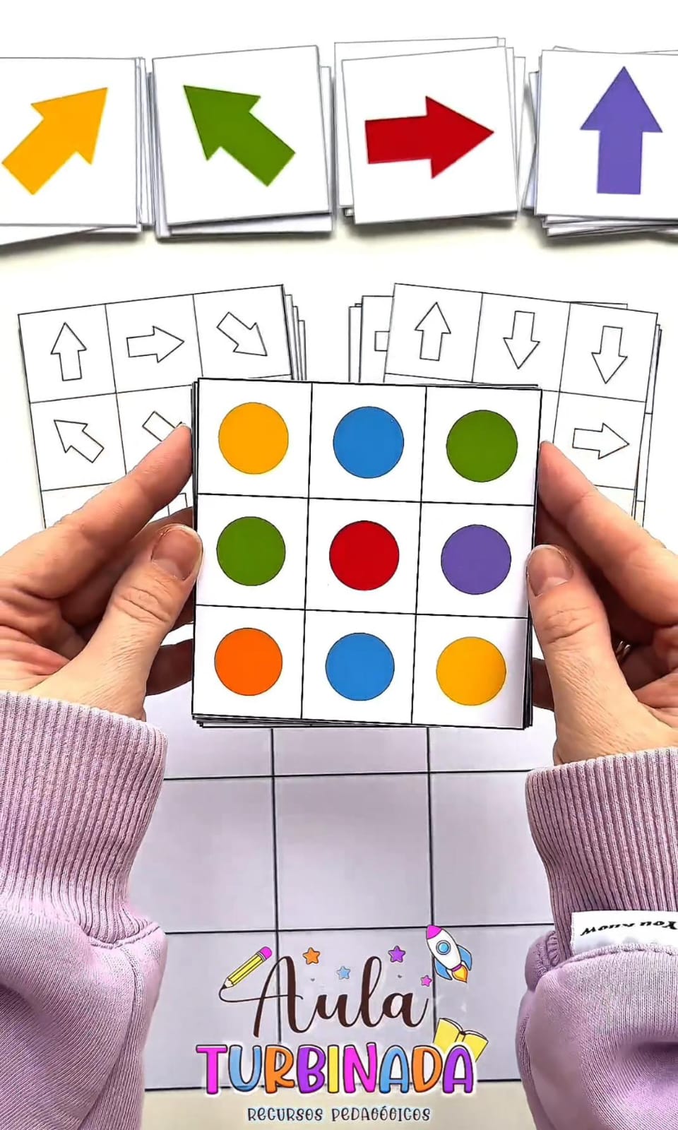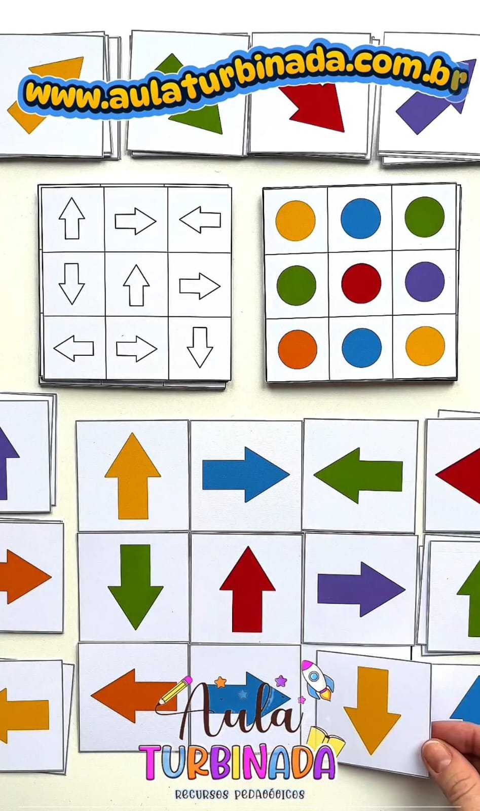 A criança deve observar, analisar e combinar a cor com a direção correta, posicionando a seta correspondente no campo maior. Uma atividade perfeita para trabalhar coordenação, foco e percepção visual! 👀✨