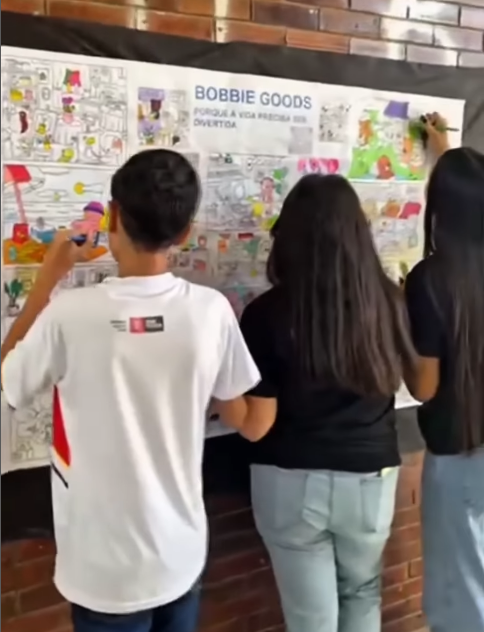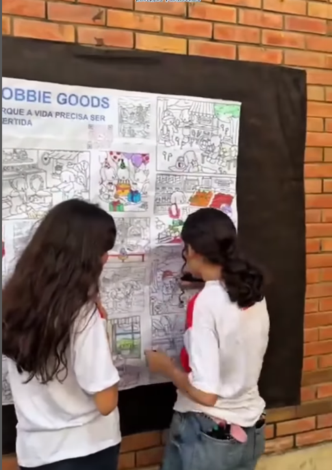 As crianças pintam juntas, desenvolvem criatividade, coordenação motora e criam uma obra de arte coletiva!